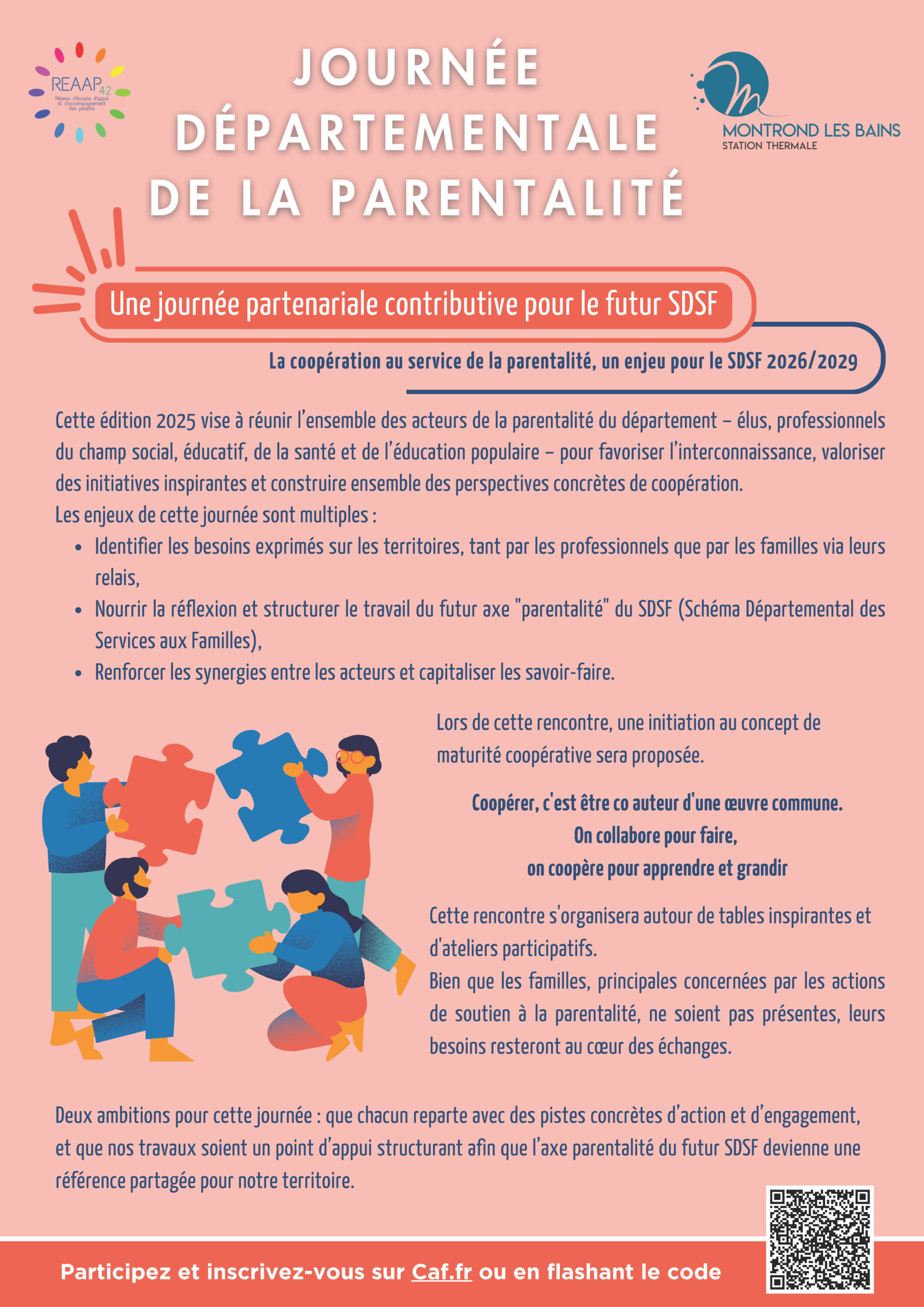 « La coopération au service de la parentalité – Un enjeu pour le SDSF 2026 / 2029 ». Telle sera la thématique de la prochaine journée parentalité qui se déroulera le 9 octobre prochain à Montrond-Les-Bains.